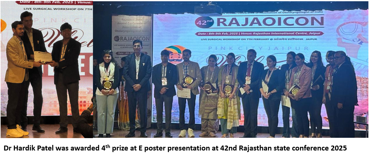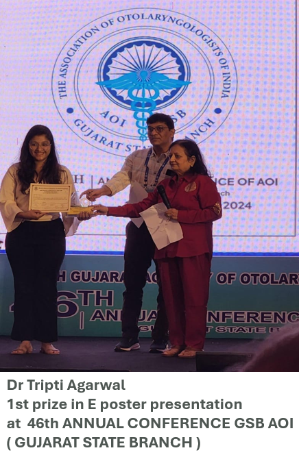 | 2025 | 1 | Eustachian tube dysfunction in patients with chronic otitis media. Dr Hiren Soni, Dr Kesha Sheth, Dr Nimisha Nimkar. International Journal of Life Sciences, Biotechnology and Pharma Research Vol 14,No. 4,April 2025 pg. 412-416. |
